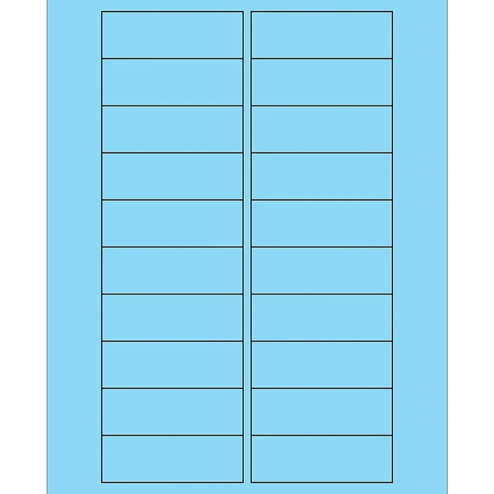 3 x 1″ Fluorescent Pastel Blue Rectangle Laser Labels. Use to create your own product or mailing labels. Labels work with both laser and ink jet printers. Permanent adhesive. Labels stick to a variety of smooth surfaces including paper, corrugated, plastic, wood, glass and metal.
