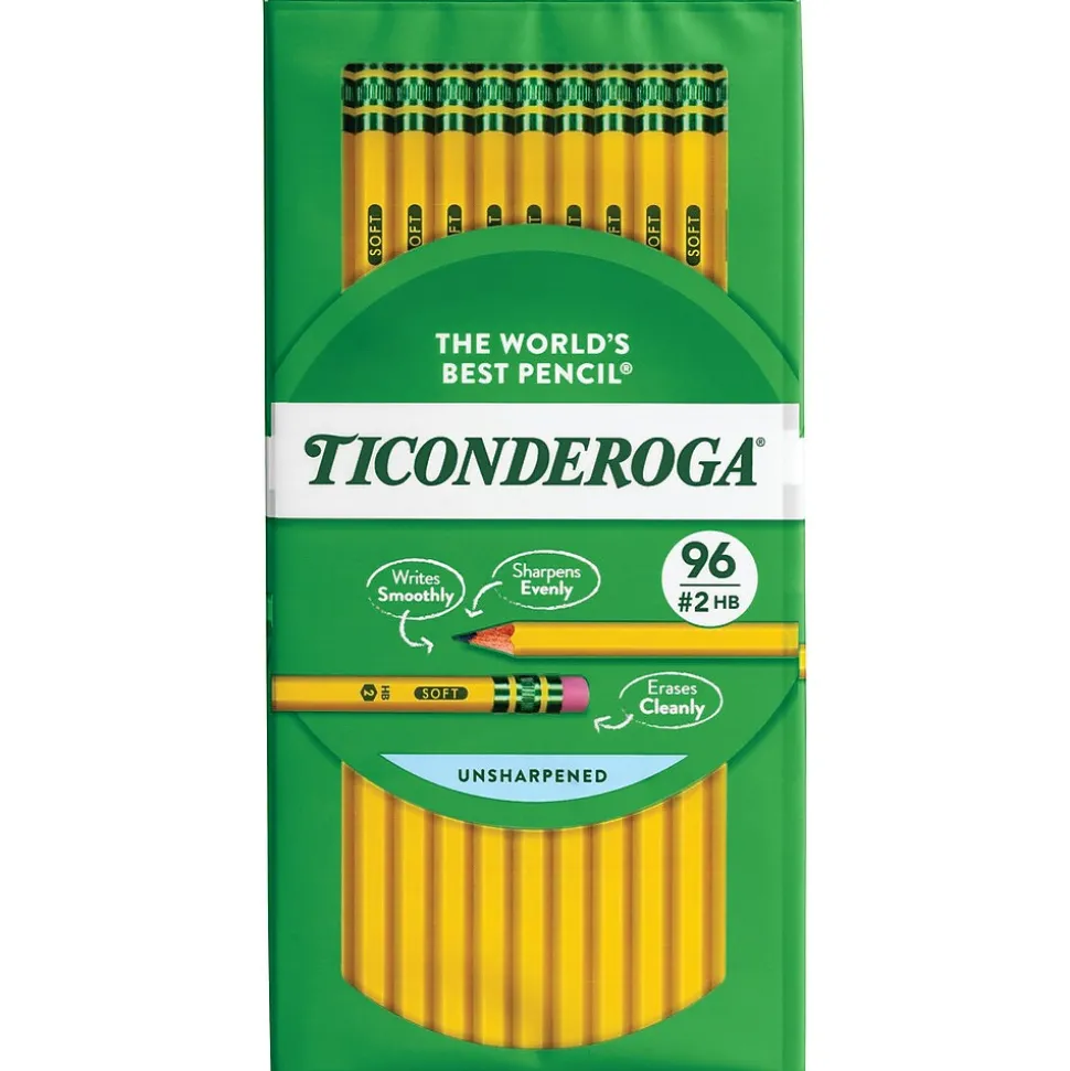 Write with smooth, consistent marks using these yellow-barrel pencils. The pencils are crafted from premium wood for durability, and the solid graphite core delivers easy-to-read print and a break-resistant point. These Dixon Ticonderoga wood-case pencils have a latex-free eraser that makes it easy to correct mistakes and eliminate stray marks.