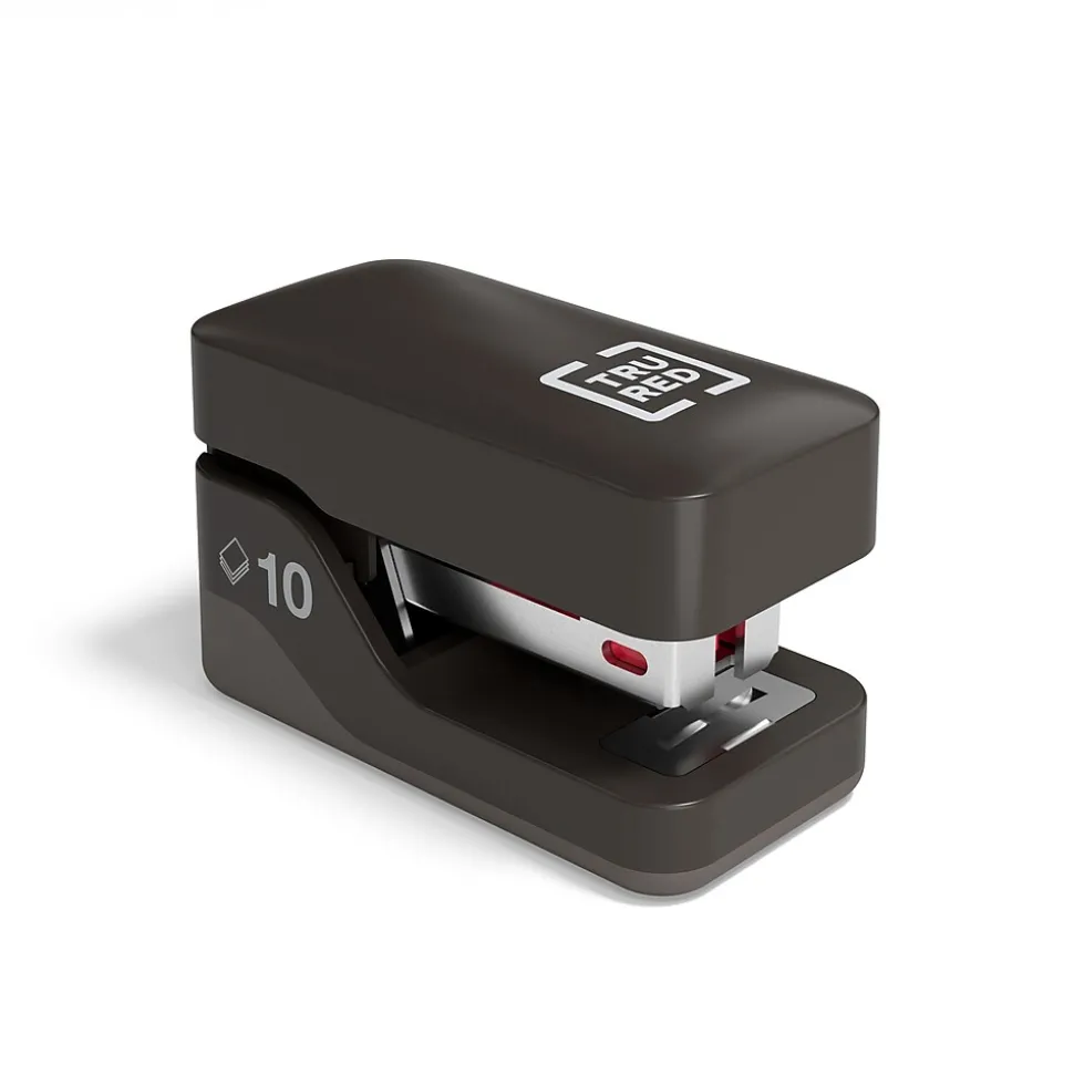 Organize and bind multipage documents with this mini stapler. The optimized design lies flat on your desk when opened and enables easy tacking, while the rubberized bottom provides a nonslip grip and stays put on your table. This TRU RED mini stapler has a convenient staple level indicator so you easily know when it’s time to replenish the tray.