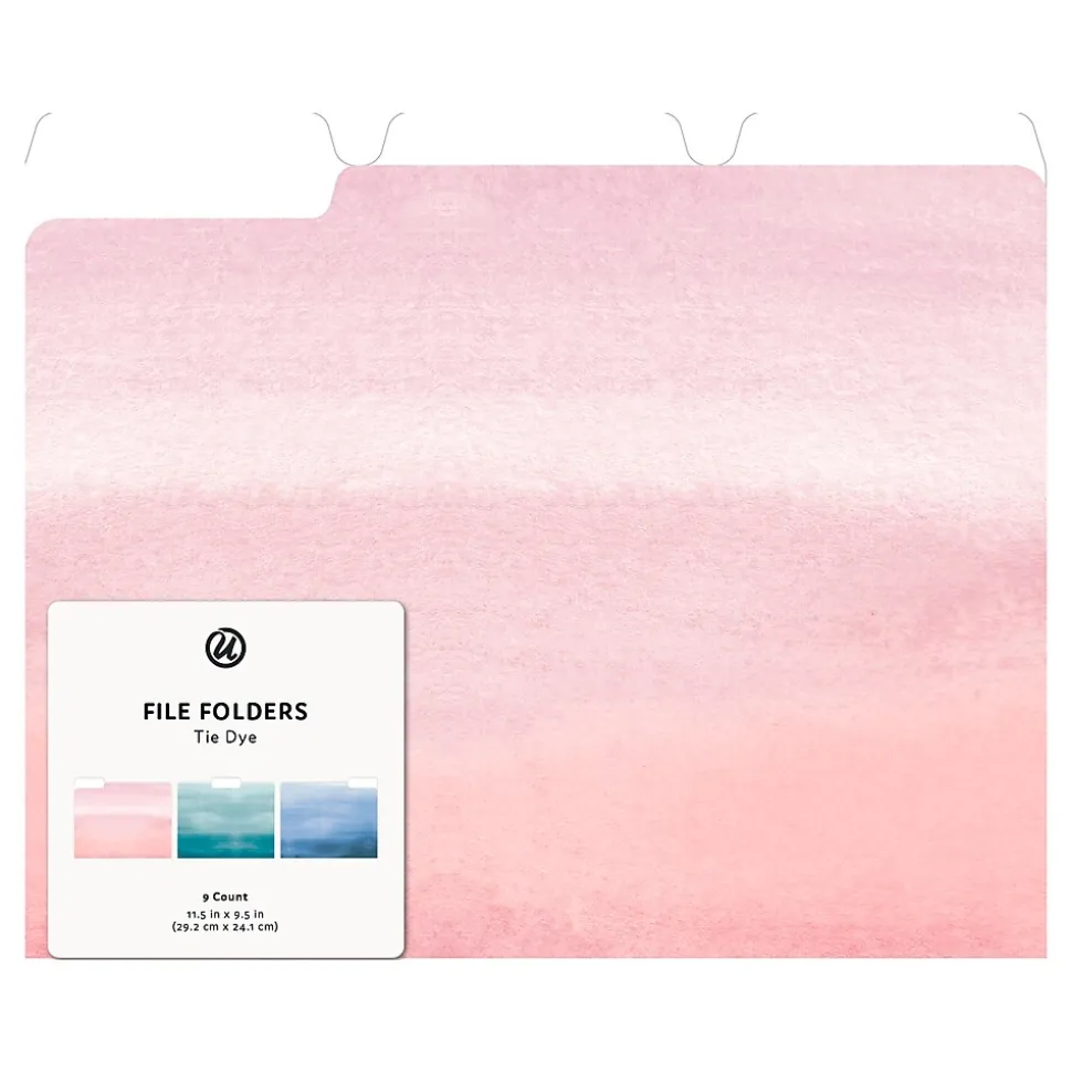 U Brands tie-dye file folders are the perfect combination of style and function. Featuring three fashion print designs with three tab positions, these file folders make staying organized fun and easy while offering a stylish look and feel.