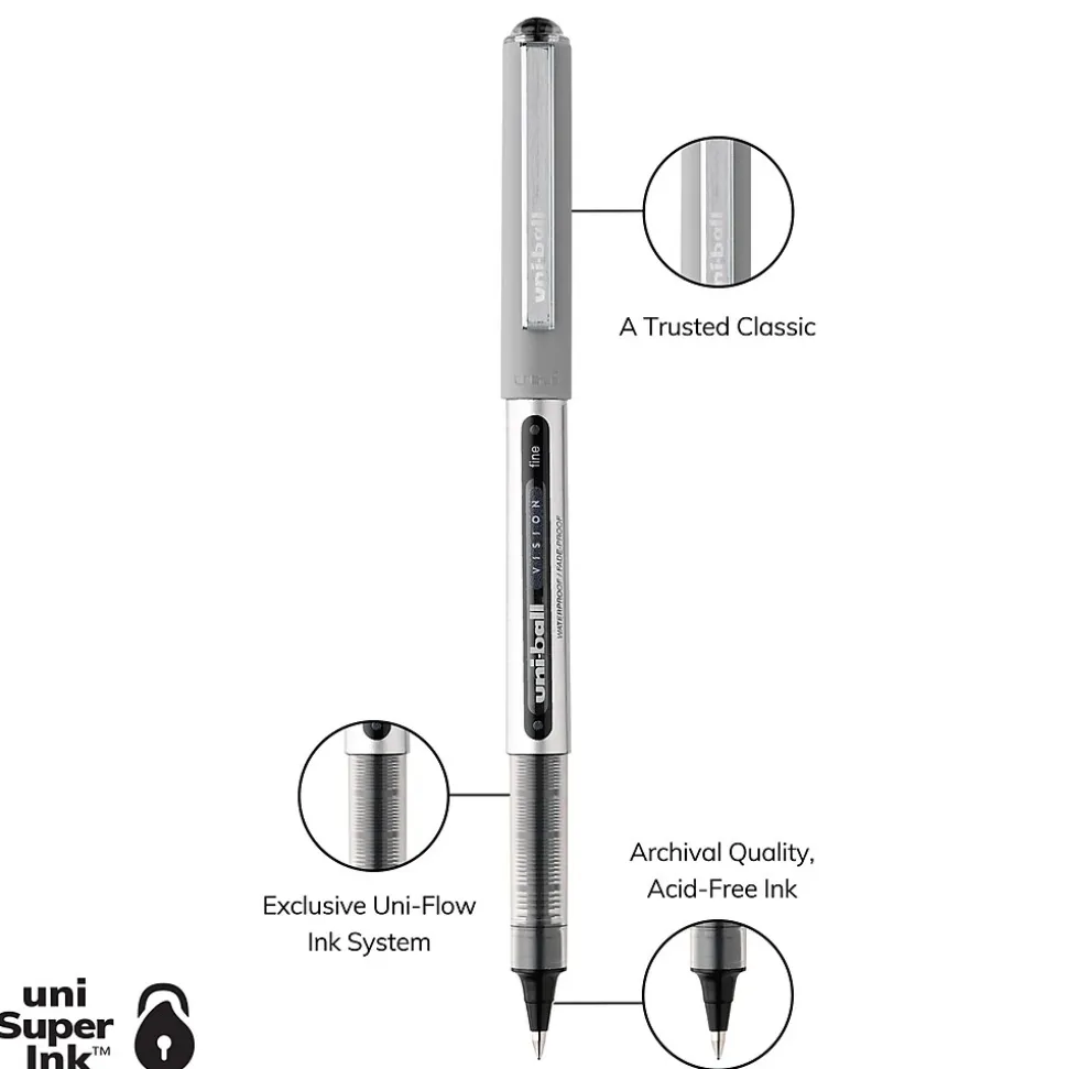 uniball Vision Rollerball Pens, Fine Point, 0.7mm, Black Ink (60126)