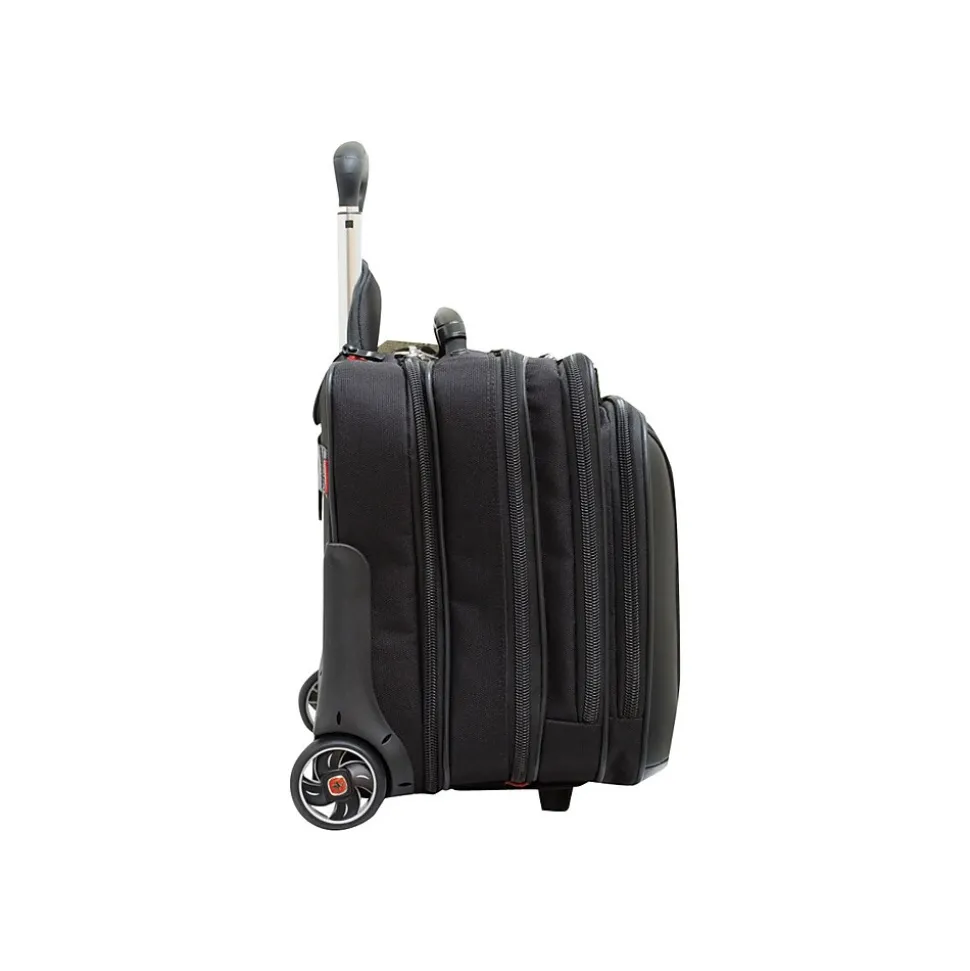 - In-line skate wheels let you roll a fully loaded case through airports or office buildings
